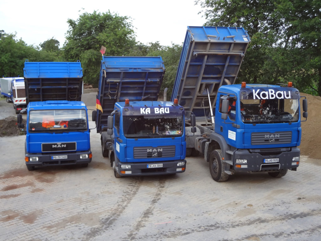 Mit einem Fuhrpark von insgesamt 35 Fahrzeugen und der ständigen Bereithaltung aller benötigten Materialien auf unserem Firmengelände in Delbrück können wir flexibel und zuverlässig auch in Notfällen reagieren. Vom Minibagger bis zum Radlader oder LKW. Ob Sand, Kies, Schotter oder Splitt für die Verfüllung. Wir sind für alle Eventualitäten gerüstet.